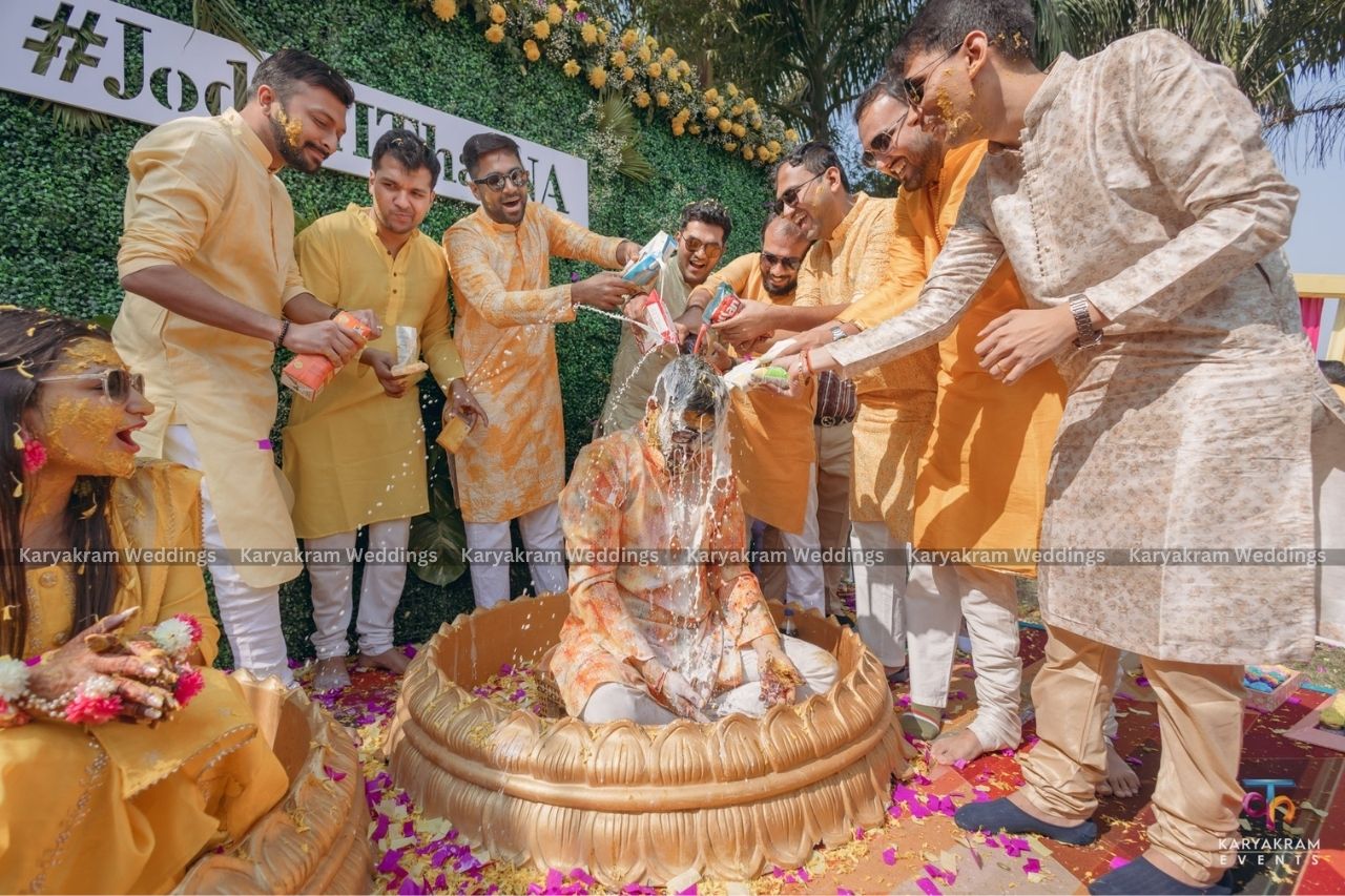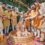 The Wedding took place in Kolkata, the city of Joy and it was a seven long day affairs starting with Ganesh Vandana, Mehendi, Carnival based Haldi, Aqua based Sangeet nights, Mayra and finally the D Day at the grand lush green water side venue.